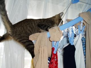 干してあった洗濯ものを踏み台にして