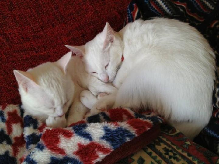 帰って来て落ち着いたのか、二匹ぴったりくっついて熟睡してました。
