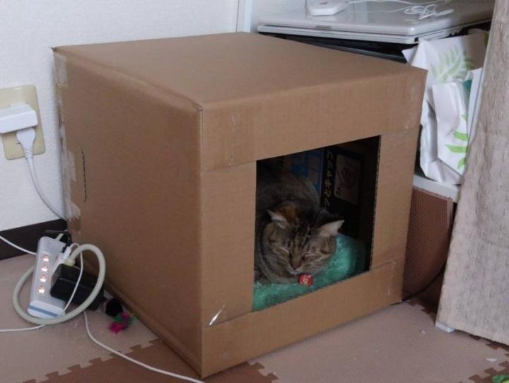 後ろに穴をあけてヒーターのコンセントを出しました(^^)