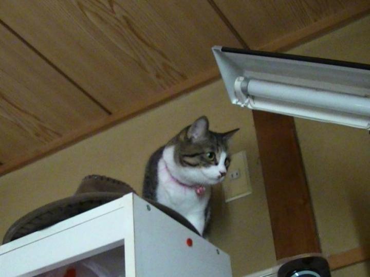 夕方地震がありましたが、膝の上から飛び跳ねて逃げて行きました。