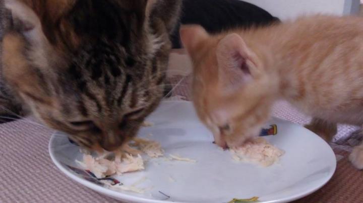 ちぃは 割いただけ、オペラは細かくみじん切り(^^)