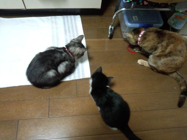 そして、その1時間後には、3ニャンでモールをじゃれあう姿も見られました。