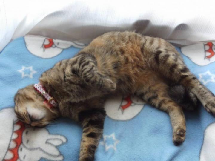最近は日中 私がお昼寝していると、ちょうど赤ちゃんのところあたりに オペラ君が寝るようになってきました(^^)