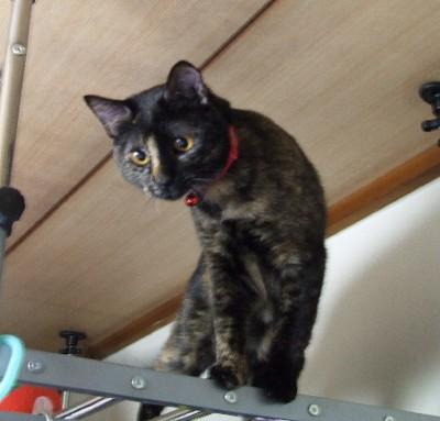 後で、棚の上を見たら、置いてあった薄い布団にずれた跡が……。