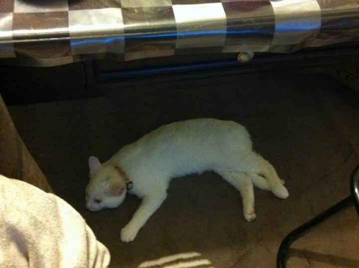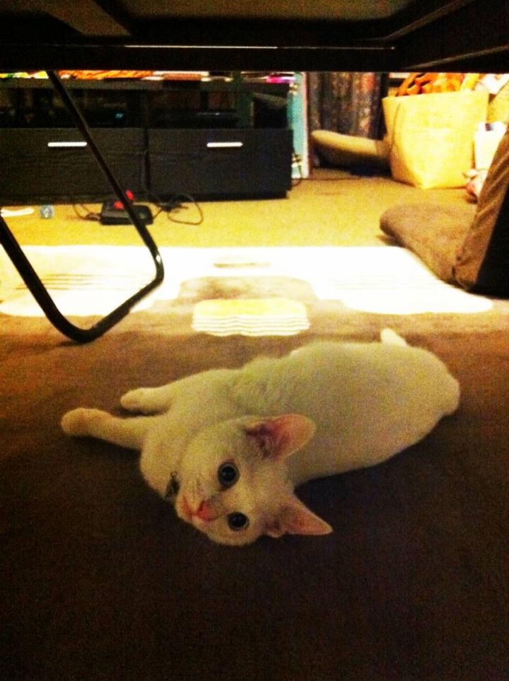 ………いかに体のより多くの表面積を温められるか…と彼なりに考えた結果が、これwww