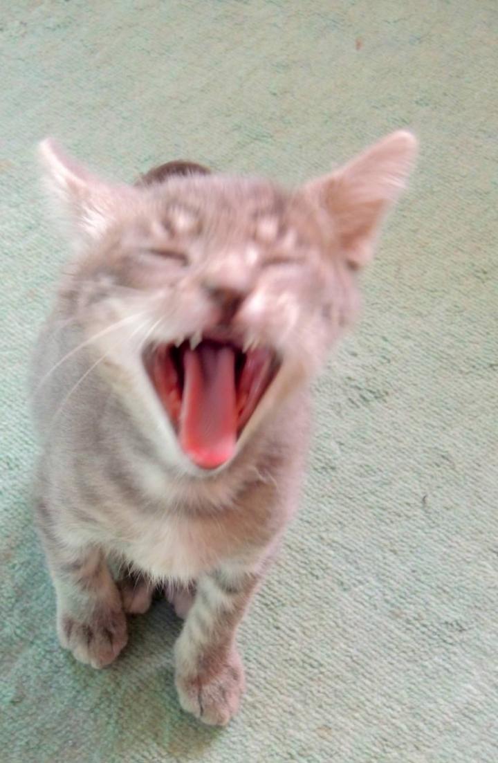 昨日はノラの大口を開けた写真だったので、今日はグレイの欠伸のシーンを(*´▽`*)