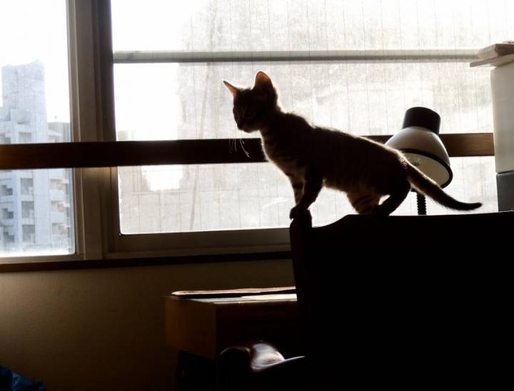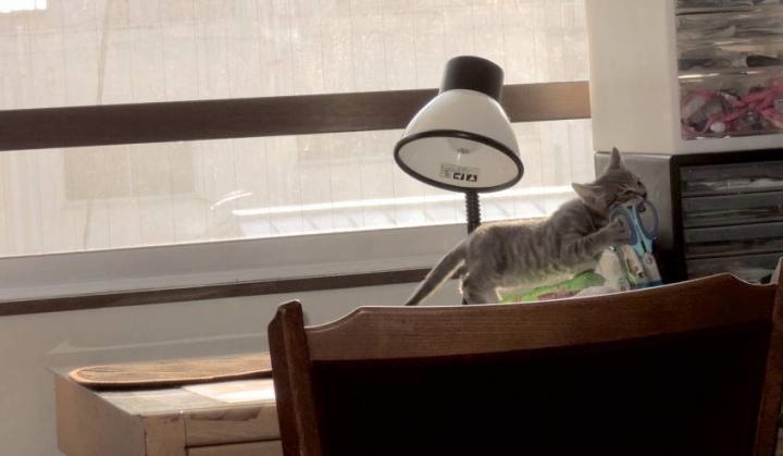 日頃の指導の賜物か、私の見ている前では机の上にこれまであまり登らなかったグレイが私が見ていないところではどうかなと思って、私がベッドでお昼寝をしている最中に、こっそり見てみると・・・