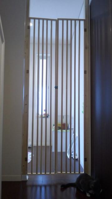 突っ張り棒とペット用フェンス(二段重ねて)でやってました。