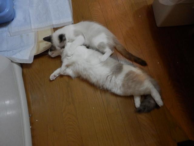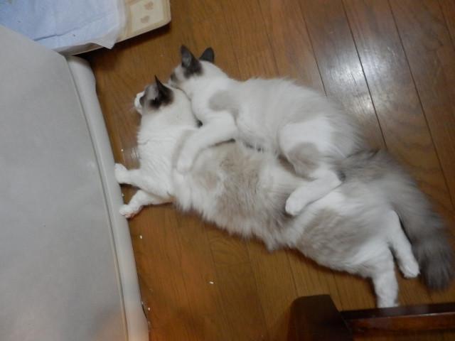 しばらくすると全然大きさが違いますが本能でか、変なあの体制をしそうになりましたが、ちびちゃんなので何も起こる訳も無くちょっと笑っちゃいました。