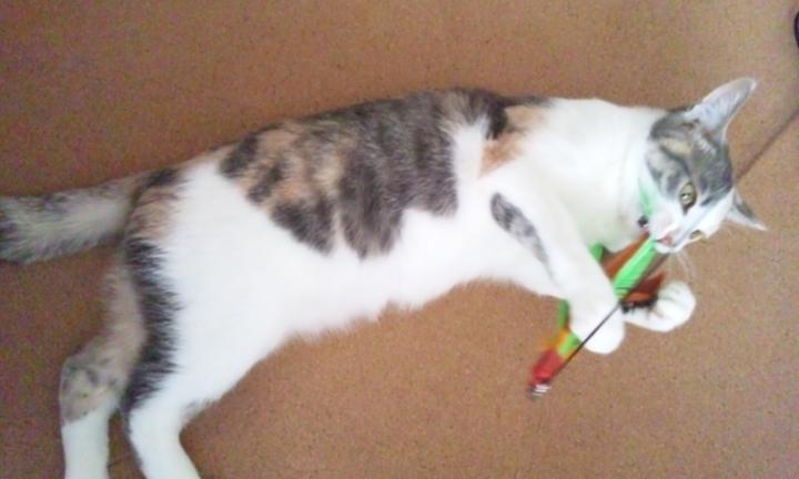 ↑ボロボロになった羽を替えたので、猫たちは更にくいついてます☆