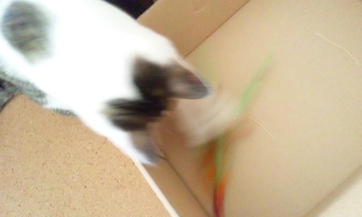 ↑リンは羽を捕まえると箱の中に入れるのが好き。