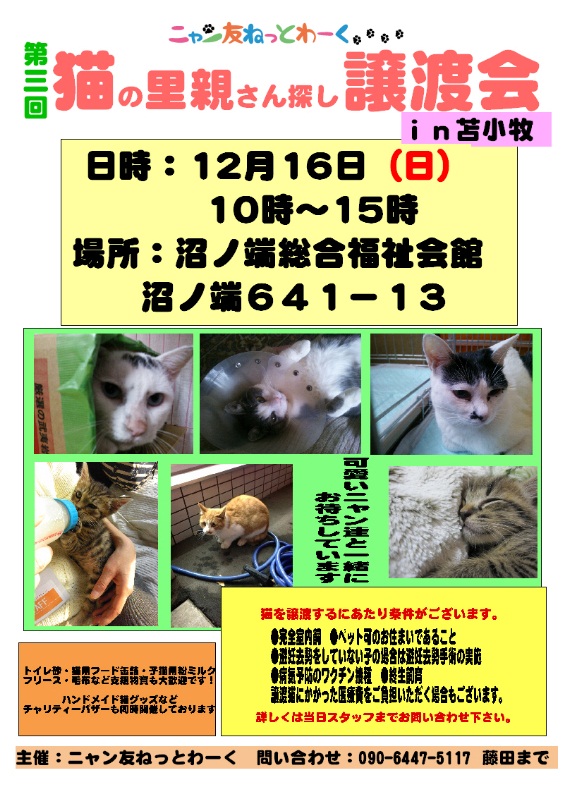 そんな中、苫小牧にて 今年最後の譲渡会を開催いたします。