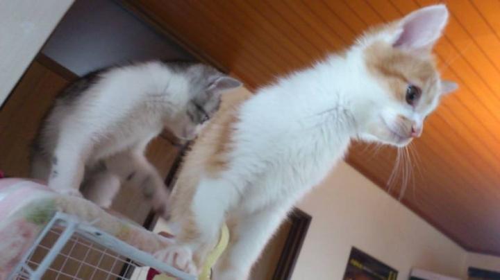 それでも無視してると、ケージの中で3ニャン走り回ります。