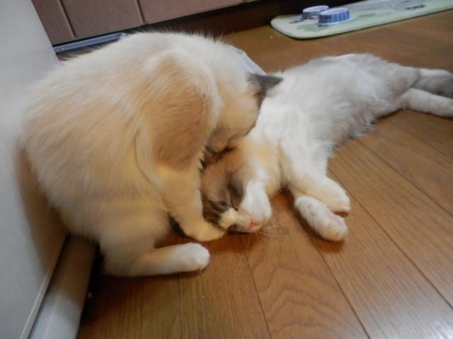 そのうち噛んだりもしておりましたが、普通でない状況を感じ取り察して頭を舐めたりして気持ちを和らげて上げているそんな1コマがありました。