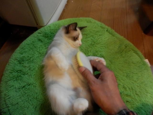 あと最近のお気に入りがブラッシングで私の技は、ブラシで呼んで鼻ぷちょを取りなだめるためにブラッシングします。