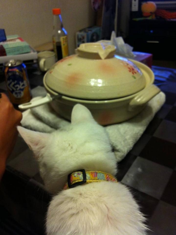 お鍋を眺めてそわそわ。