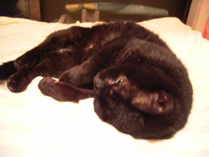 ちなみにツナ缶をもらったら、勝手なモンで人の布団の上で爆睡です↓
