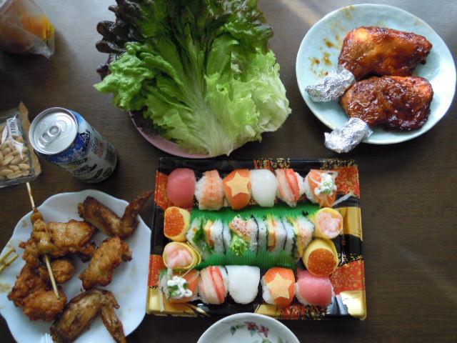 お寿司、ビールで乾杯~( ^^)/▽▽\(^^ )~