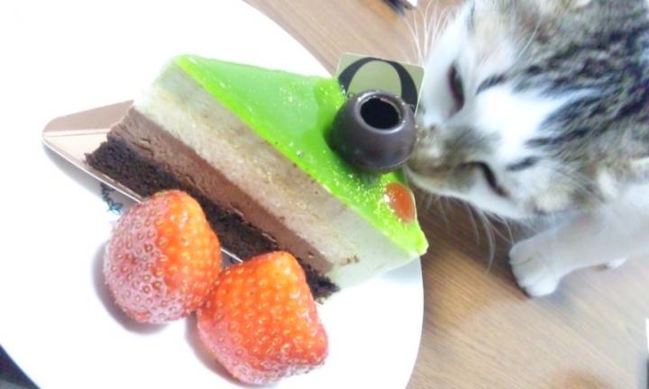 ↑私のケーキまで狙われ、これまた急いで食べることに…