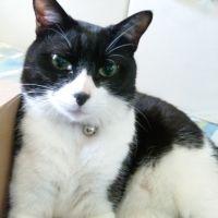 ま町の白黒:とても良く似てるが顔のハチワレ模様が違う、首輪無し