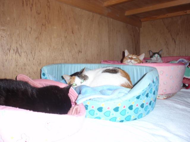 最近はみんなこたつより押入れが好きなようで、押入れにそれぞれのベッドを置いてみんな入ってます~