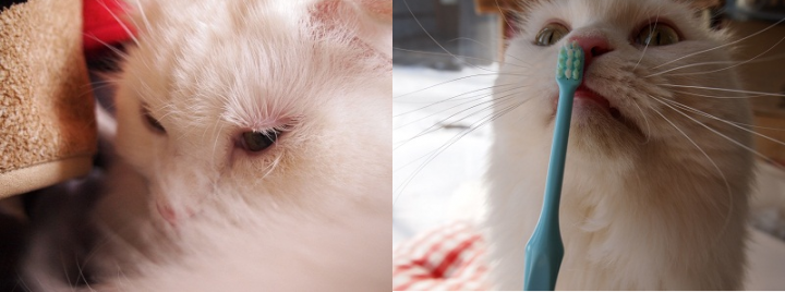 左目が・・・やっぱ腫れて目やにが出てしょぼしょぼだ!