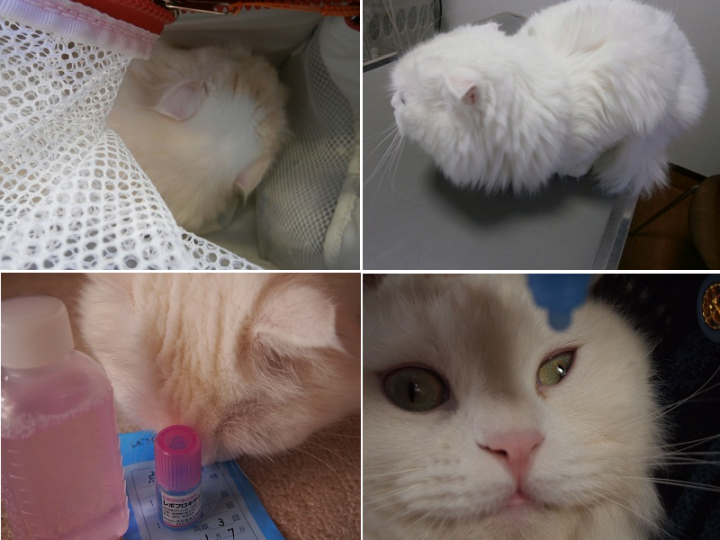 抗菌点眼薬をだしてもらい羽交い絞めで点眼してます