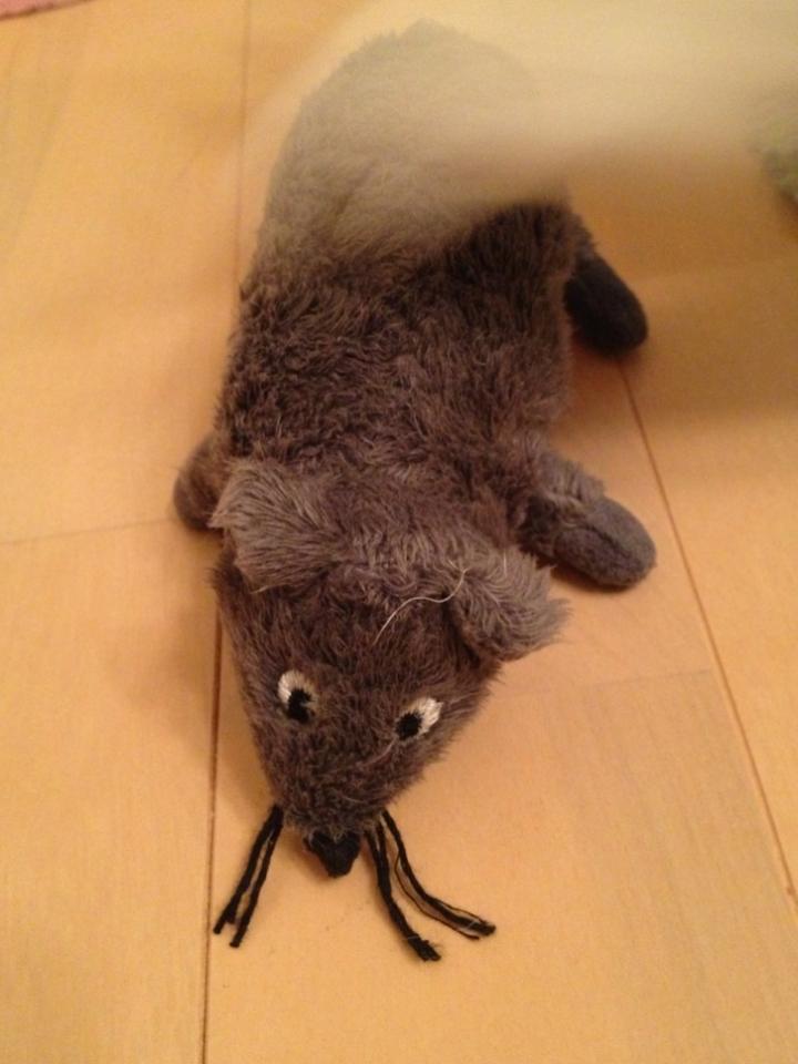 ねずみの写真を撮ろうと思ったら、さっそく右上から手が伸びて来ました。