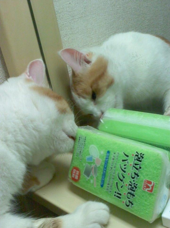 どうもこの2人は洗面所の辺りが好きみたいで、 すぐよじ登っては足を滑