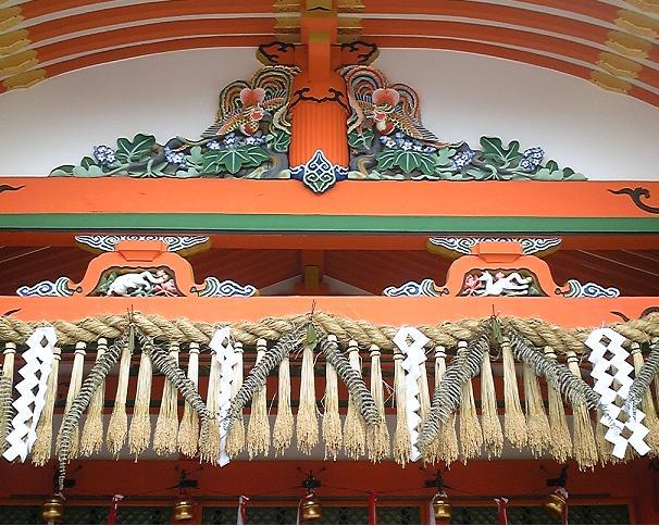 五穀豊穣、しめ縄には稲穂が沢山下がっていました。