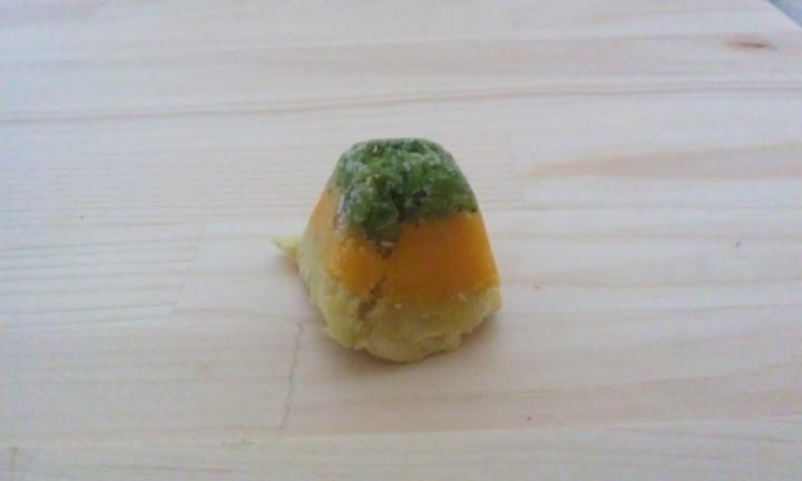 今回は、一緒にかぼちゃとさつまいも蒸してペースト状にし、氷玉にしました。