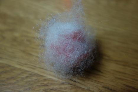 ぼわぼわの羊毛を一針一針、固くなるまでチクチク・・・