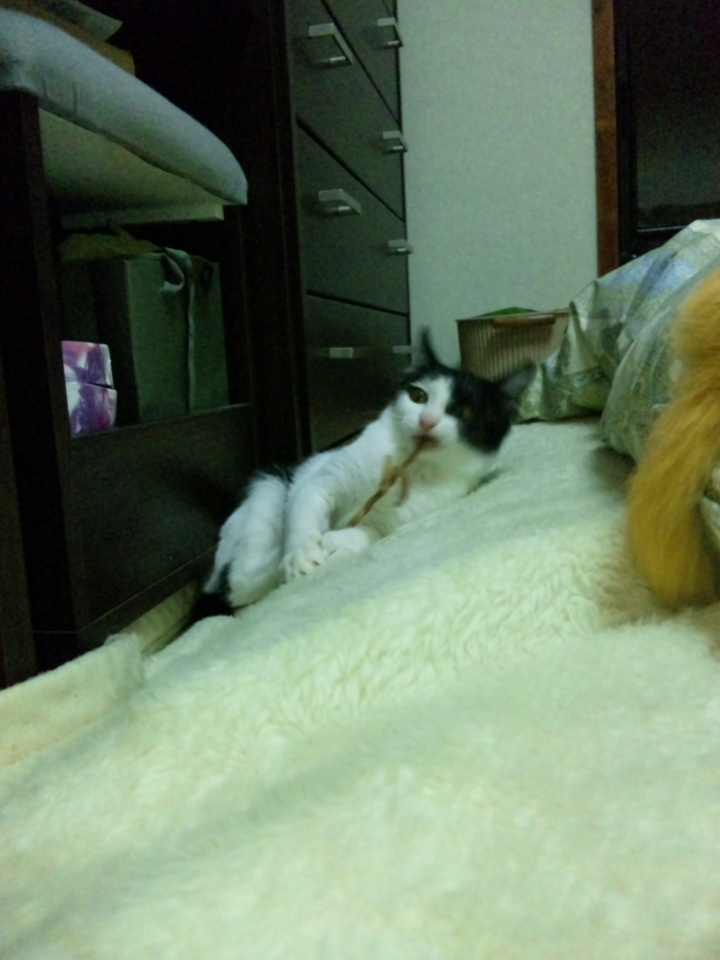 かわいい写真を撮りたいのだけど、基本ソファーの下のベットで、出てくるときは遊んでいるときなので動きが早くてなかなか上手に写真が取れません。久しぶりの動きの速い子猫に戸惑うこともありますが、たくさんかわいがって、できる限りお留守番の時間も少ないように家にいてたくさん遊んであげようと思います。