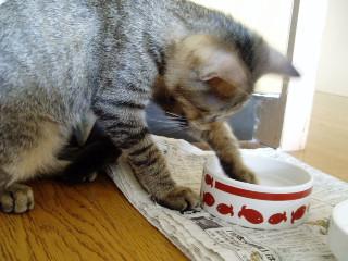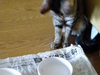 「つ、つべたい・・・にゃ。あ、水がついた・・・」