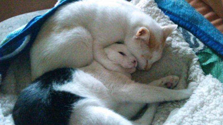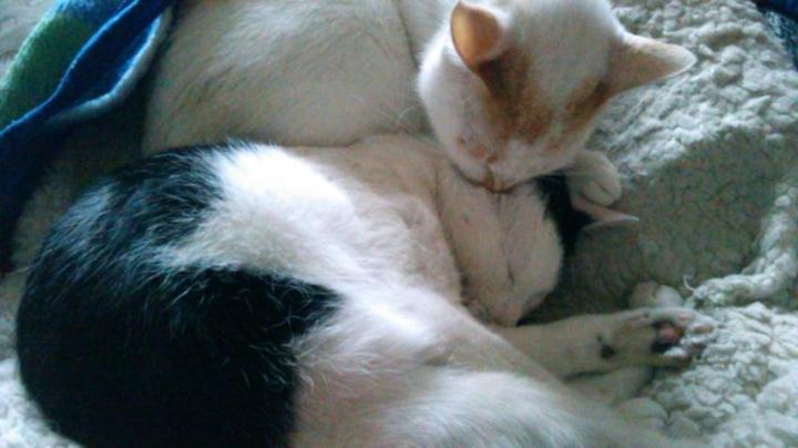 寝てる邪魔をしたり、されたり、最後は仲良く一緒に寝ております。