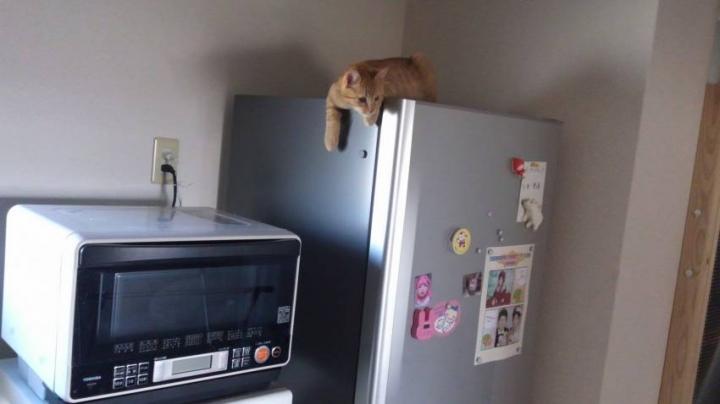 おぺら君が 冷蔵庫の上に乗るようになってしまいました。