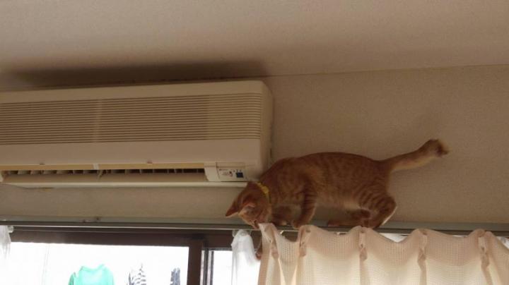おぺ君は 相変わらず、カーテンをよじ登って にゃお~ん と吠えています(笑)