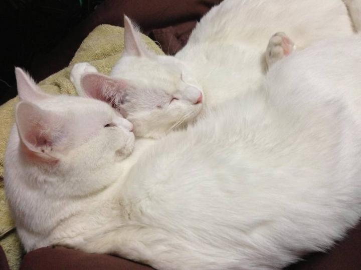 猫は6ヶ月の白猫(オス)が二匹、とても可愛い!