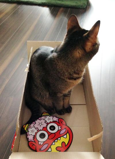 ↑「鬼はお面を捨ててあっちに逃げたよ。福が来るとイイネ。」