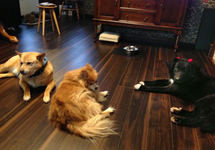 一緒についてくるシェリー、逃げまどうティア、落花生を転がして遊ぶメイソン。
