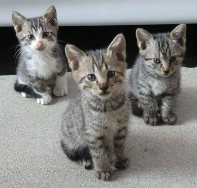 外の棚で産まれた三つ子は、はじめは家族と折り合いがつかず、しばらく家の中で飼えませんでした。