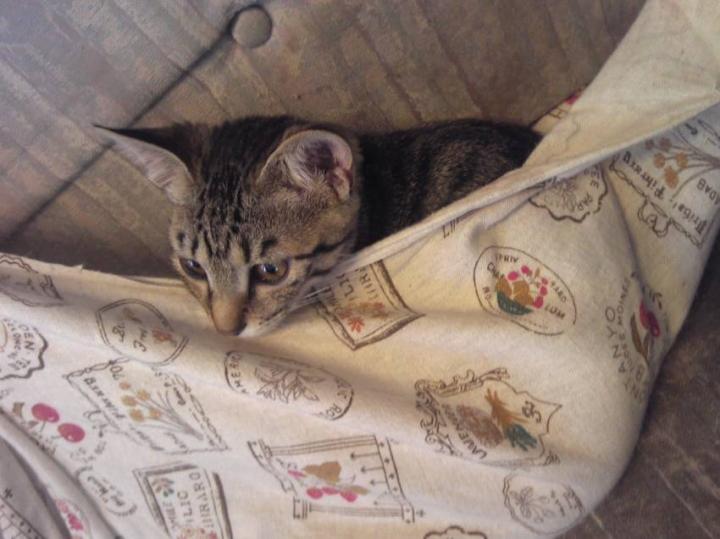 布をぐるっと巻いて、ゴムで留めるだけの簡単なものだったので、すぐにふにゃ~んとなって、ちょうどマリンが遊ぶ隙間ができた、、、、、、