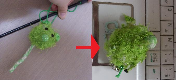 このおもちゃがお気に入りみたいで、買ったその日に 竿から引きちぎり、咥えて まわっています(笑)
