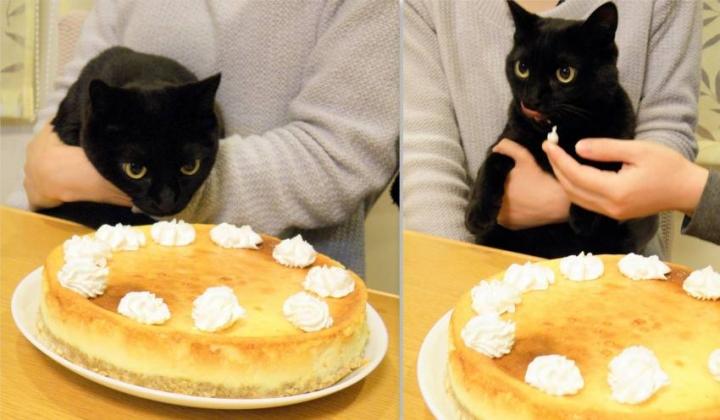 姪のMの家の猫娘の真央ちゃんにも チーズケーキのお裾わけです。