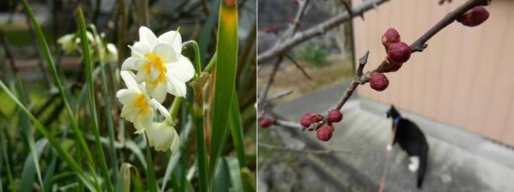 楓や紫陽花の枝に新芽の予感。梅のつぼみも。