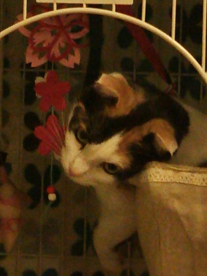 お嬢ニャン匂いを嗅いだり、パンチしてみたりと