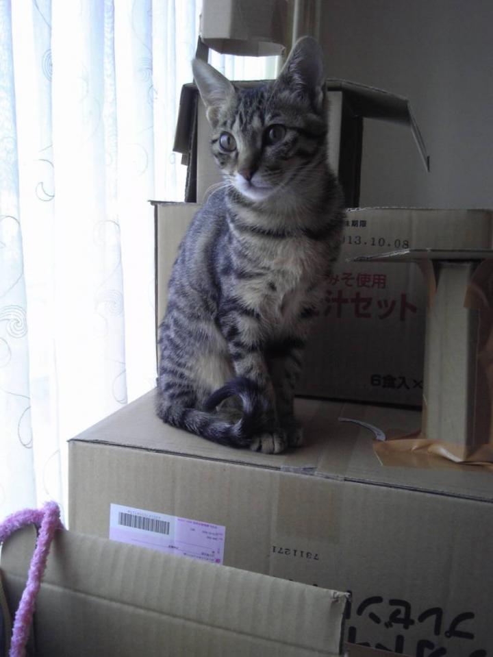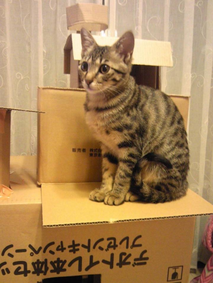 その上に小さいダンボールを乗せて、隠れ家風にしてみました。
