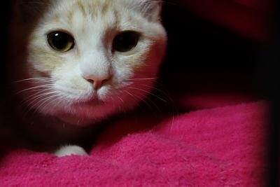 (ネコ部屋は寒いので、傷が癒えるまでは温かくしようということで居間です)