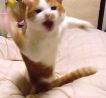 もう布団の上を走り、 顔は踏みつけられ、 挙げ句は頭をかじられ