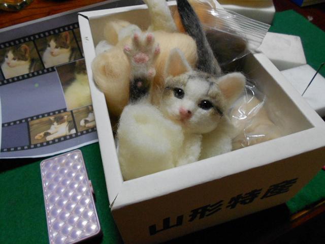 趣味の羊毛フェルトのキジ白ちゃん、ベースの羊毛が足りなくなり、またまたほったらかしです。